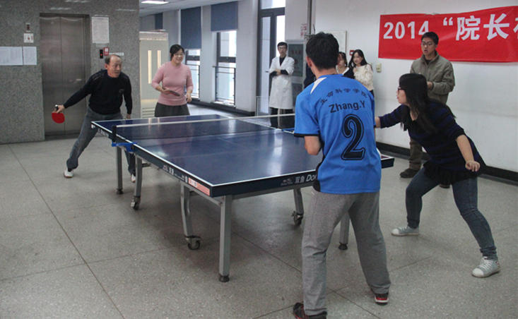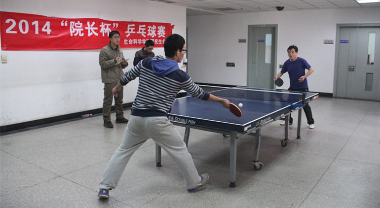 11月24日中午12:30,2014年生科院“经理杯”乒乓球团体赛小组赛的比赛继续进行。对阵形势是“godball”VS“院部队”。