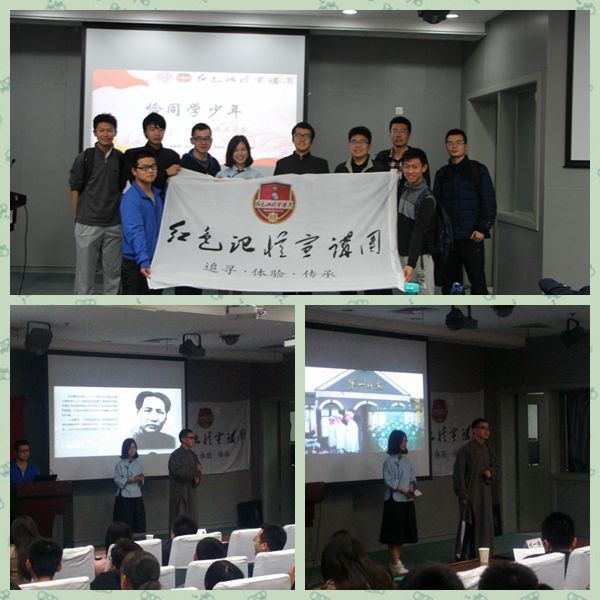 在讲座开始之前,红色记忆宣讲团带来节目《恰同学少年》,精彩的表演和激情的演讲相结合,为我们讲述了青年毛泽东如何选择并坚定了改造中国社会,通过革命建立新中国的志向并为之不懈奋斗的故事。