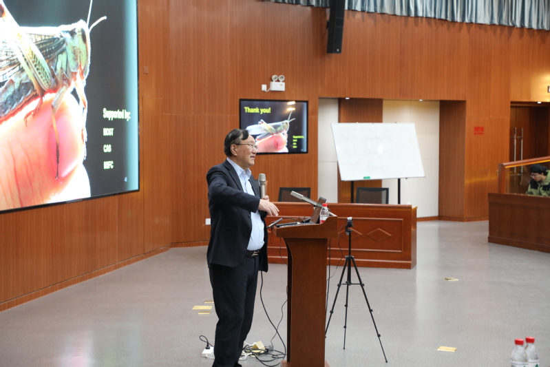 课程伊始,康乐院士以跨文明视角勾勒蝗灾演进史:古埃及壁画中蝗群蔽日的场景、中国甲骨文“蝗”字象形符号,揭示人类与蝗灾抗争已逾七千年。蝗灾发生时危害极大,蝗群数量超过百亿只、重量可达三万余吨,影响范围波及一千两百公里以外的区域,历来受到各国政府的高度关注,也对人类社会历史产生了极为深远的影响。
