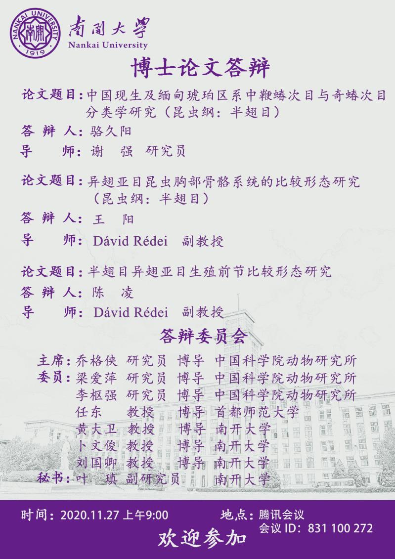 yl23455永利博士研究生(骆久阳、王阳、陈凌)毕业论文线上答辩公告