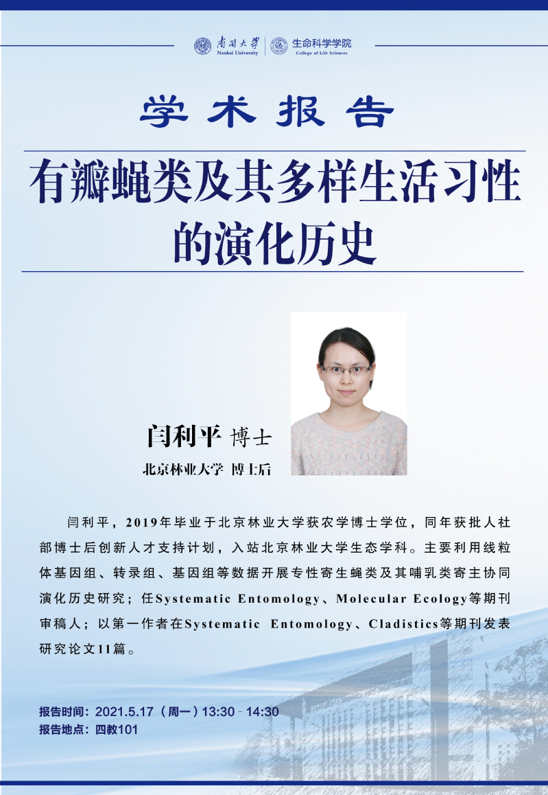 05.17 13:30 & 15:00 学术报告-- 闫利平 & 李晨虹