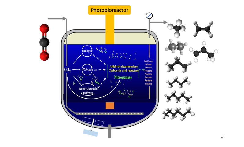 2021年10月20日,永利官网夏文杰和马挺团队在《Journal of Cleaner Production》杂志上发表了题为“Photo-driven heterogeneous microbial consortium reducing CO2 to hydrocarbons fuel”的文章。本研究表明CO2可以经过特定微生物群落的转化,合成短链烷烃(C1-C5烷烃和C2-C3烯烃),且具有更高的CO2固定率和烷烃转化率;重点研究CO2烃转化过程中菌-功能基因-产物的相互相应机制,明确了生物CO2烃转化的代谢路径,建立了多元化微生物共培养转化体系;明确路径Calvin-Benson-Bassham循环, Reductive tricarboxylic acid循环和Wood-Ljungdahl循环等在体系中CO2固定的角色,以及carboxylic acid reductase酶、aldehyde decarbonylase酶,nitrogenase酶等烷烃合成角色。本研究为CO2生物转化和定向调控技术的推广和应用奠定理论基础和工程基础。