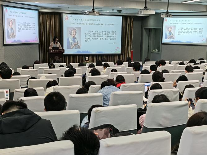 文学院“诗话中国”宣讲团成员张紫煜、曹晶晶带领师生走进周恩来总理与叶嘉莹先生的诗词世界。张紫煜通过解读周恩来青年时期诗作《春日偶成》和《大江歌罢掉头东》,带领党员师生们感受周总理“面壁十年图破壁”的救国理想与革命豪情;曹晶晶通过解读叶嘉莹的《哭母诗》及晚年诗作,带领师生们感悟叶先生在动荡中坚守文化根脉的坚定决心和“一灯燃百千灯”的赤子之心。宣讲团以诗为媒打通历史与现实的情感脉络,串联起两位伟人的人生轨迹,诠释了诗词中蕴含的家国情怀与文化担当,让革命先辈的理想信念与文化大家的赤忱情怀跨越时空,成为滋养党员师生精神世界的丰厚养分。